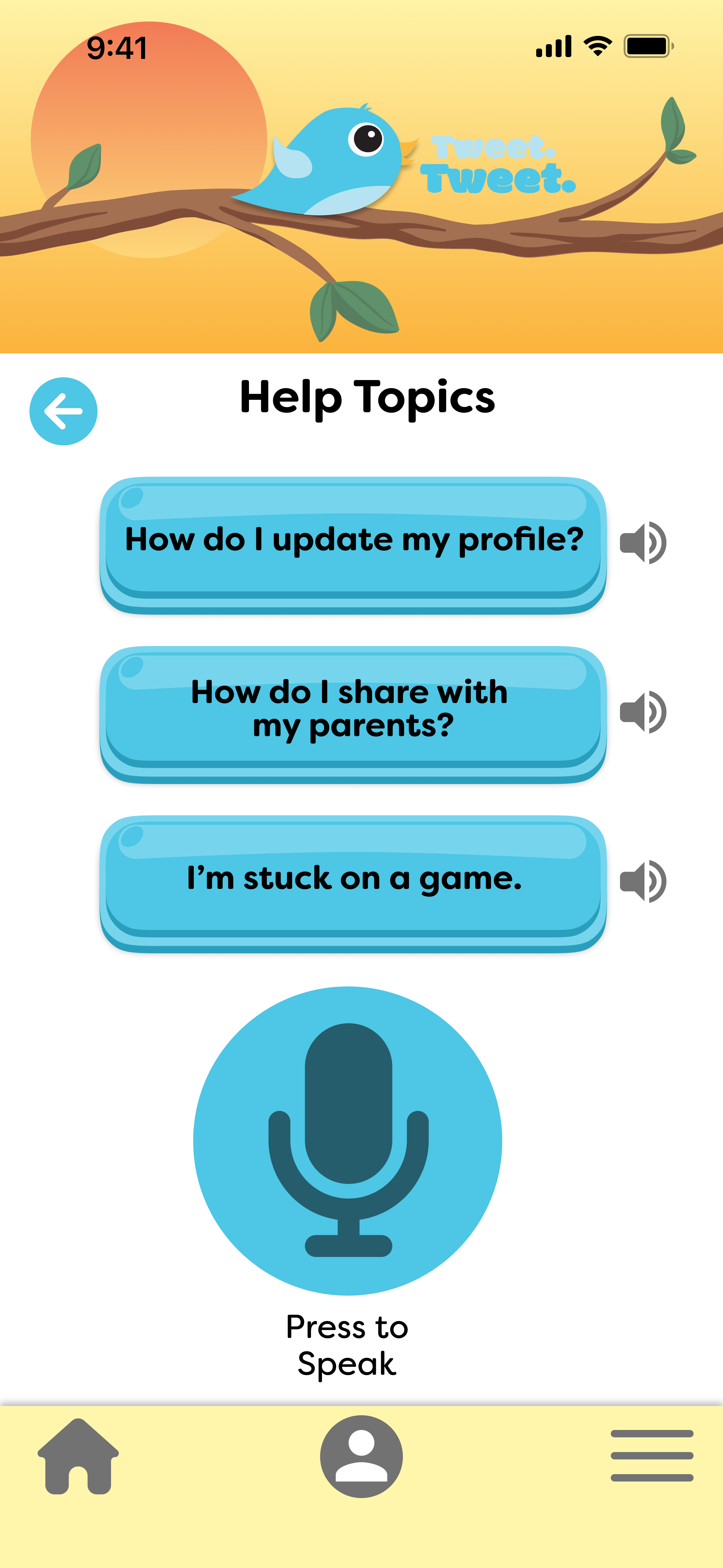 Knowing that not all of the users would be proficient readers I added in the option have any text spoken to them by pressing the talk button
